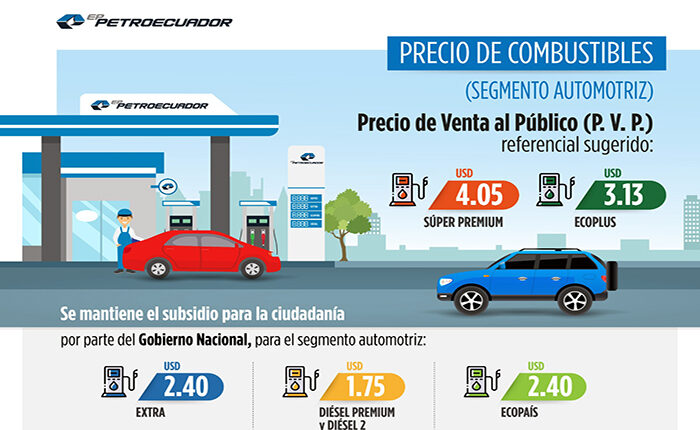 QUITO, Pichincha La empresa pública Petroecuador anunció que, desde hoy 12 de agosto, rige un nuevo precio referencial sugerido para la comercialización de las gasolinas Súper Premium y Ecoplus. Este cambio se aplicará en las estaciones de servicio propias de Petroecuador y afiliadas al segmento automotor. La gasolina Súper Premium 95 octanos, que antes costaba […]