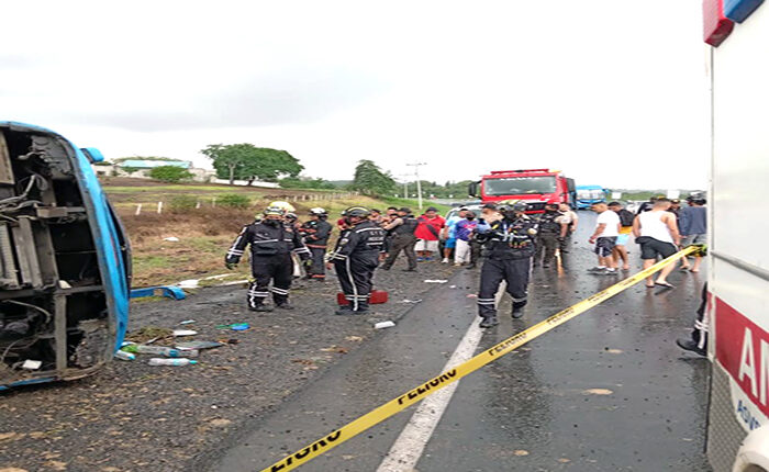 PLAYAS, Guayas Una llamada de emergencia al ECU 911 alertó sobre un accidente de tránsito, ocurrido este lunes en Playas de Villamil, pasando la Base San Antonio a 2 kilómetros sentido hacia Guayaquil. Un informe de la Policía señala que se trató del volcamiento de un bus de la cooperativa Posorja, en el que habría […]